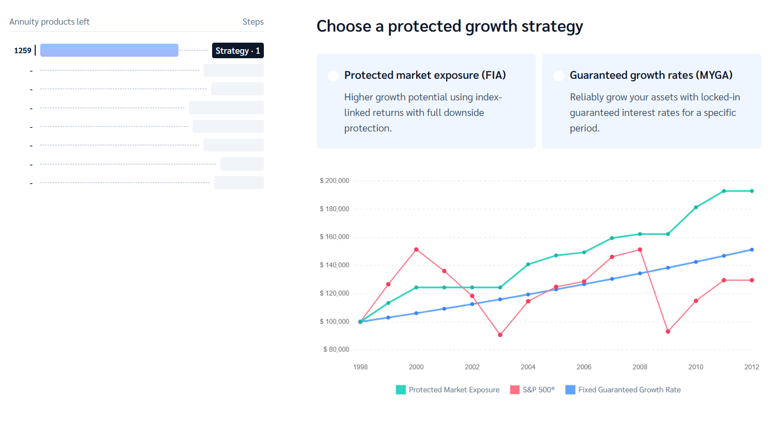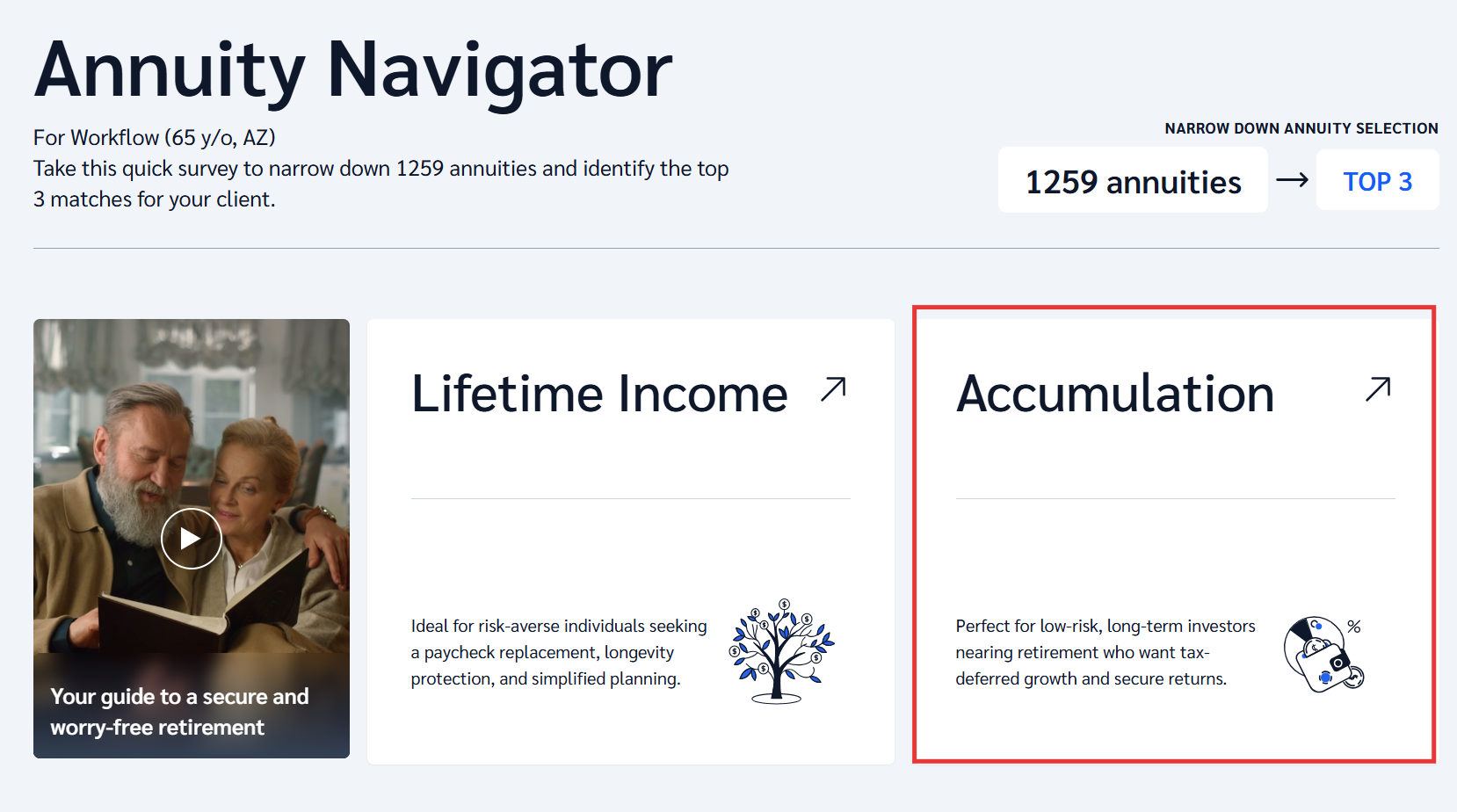 The Annuity Navigator is a guided, client-facing tool that helps agents quickly identify and present annuity strategies based on a client’s goals.