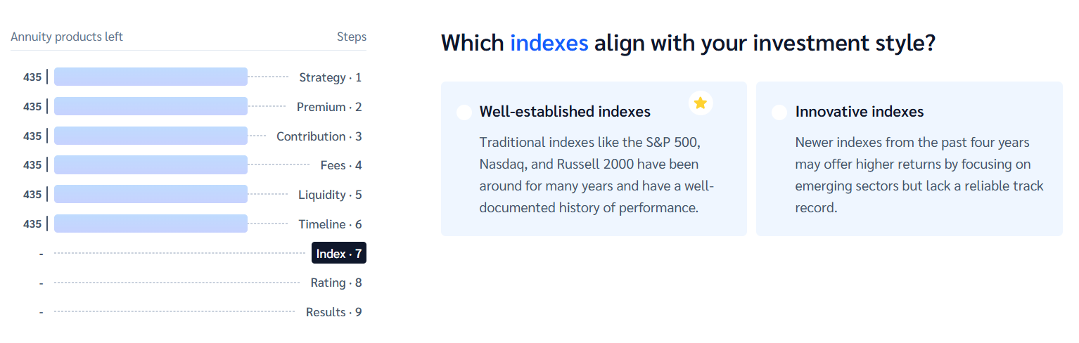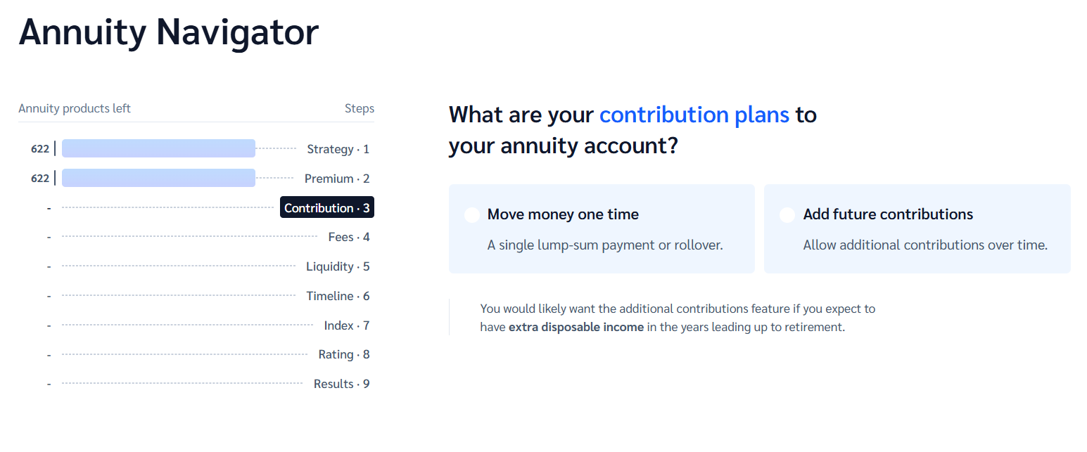 Once selected, the Navigator will guide you through a few simple questions to narrow down the best growth-focused annuity options.