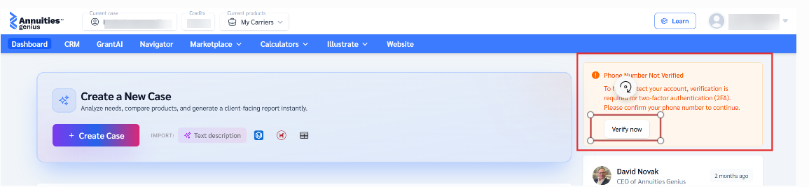 6.Once you have successfully logged into the dashboard, please ensure that you have completed the "verify now" setup. If you have not already done so, the first-time login process requires the verification of your number for future logins.
