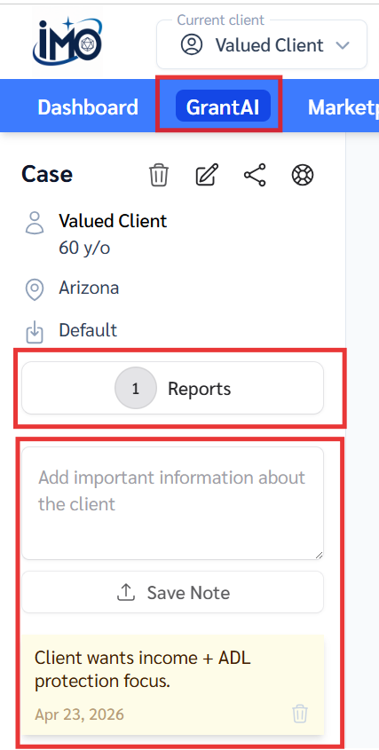 - - Reports have been saved, and notes have been documented for record-keeping under the grant AI section in the client’s profile.