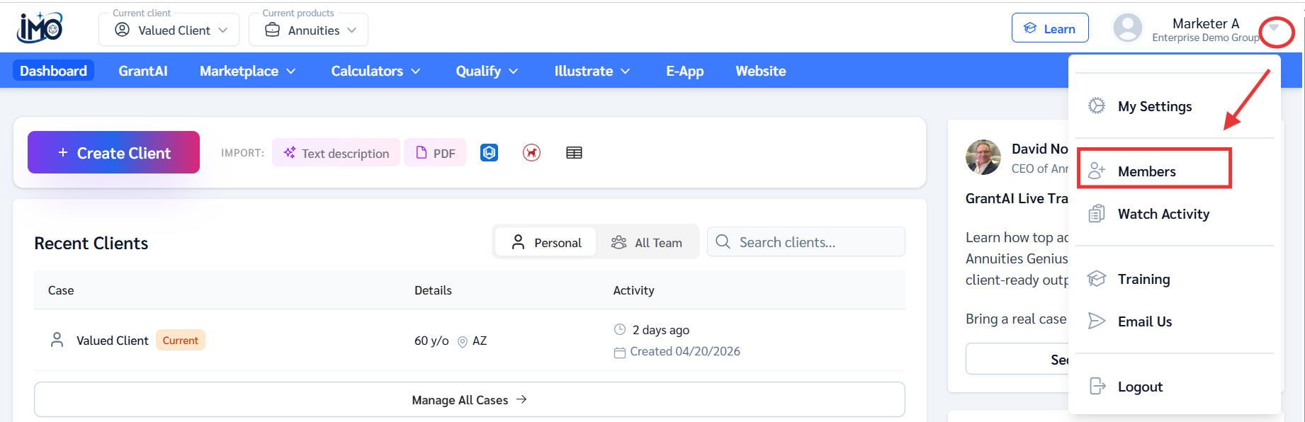 You also have visibility into members and affiliates, allowing you to understand your team structure, coordinate efforts, and support producers effectively throughout the case process.