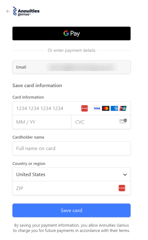 Please enter the cardholder's name, credit card number, expiration date, CVC code, and billing ZIP code.