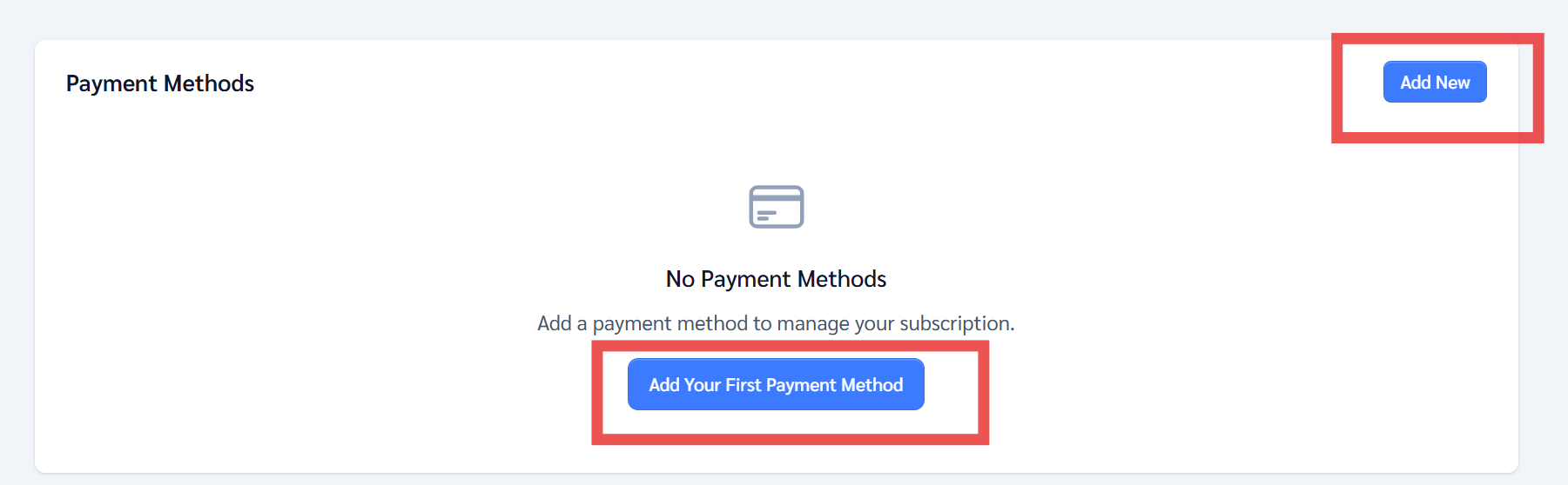 - Within the "Payment Methods" section, select "Add your first Payment Method" if you do not have one yet.