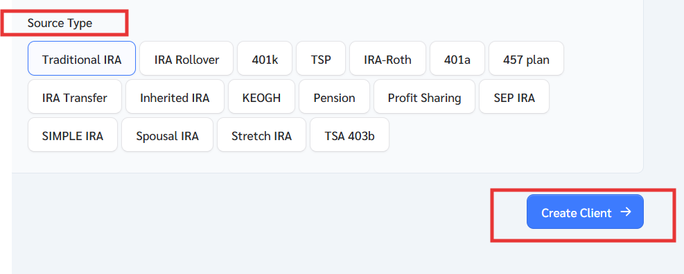 Once you have completed these steps or selected “Unsure” for any fields you wish to skip click Create Client.