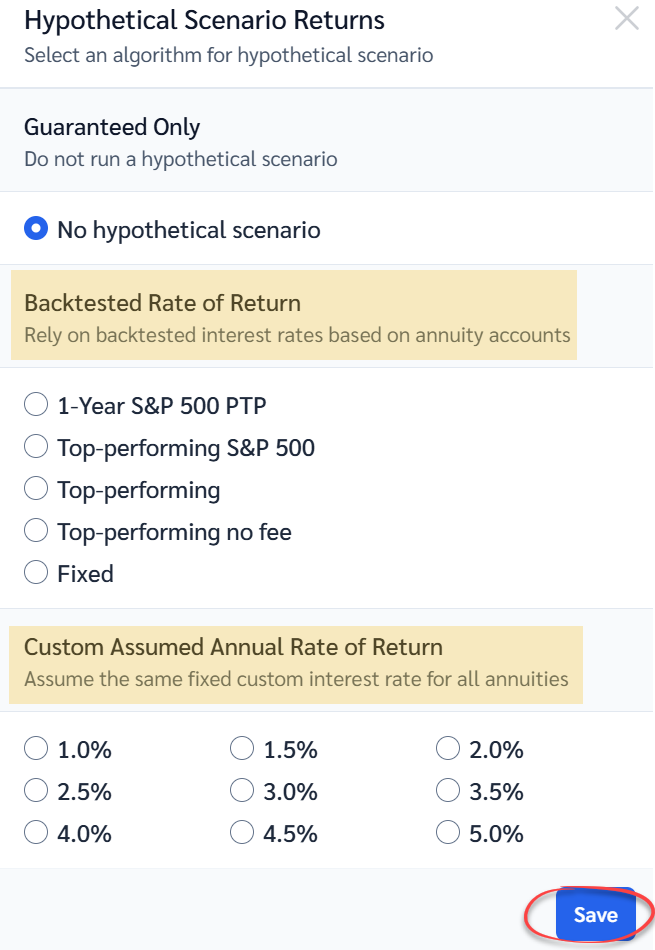 Solving for Premium: This refers to the required amount needed to achieve a desired annual income. It calculates how much you need to invest in an annuity to reach a specific lifetime income.