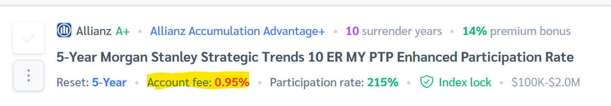 Common question we get: Under 'Account Fees,' when it shows the fees, like a 1.25% fee for a carrier on some of their indexes, When you click on the historical rates, showing the best, worst, etc., over the last 10 years—such as 13%—is that figure before or after the fee is deducted?
