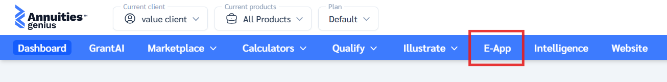 From the top navigation bar, click E-App (located in the blue menu at the top of your screen).