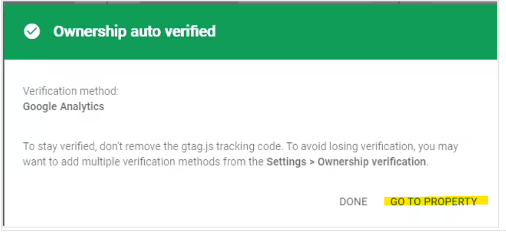 - Click on "GO TO PROPERTY" at the bottom of the verification pop-up