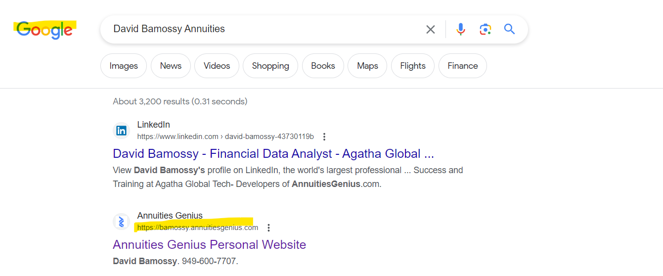 - and Cut and Paste the address of your personal website (for example: https://bamossy.annuitiesgenius.com) into the URL prefix "Enter URL" text box again