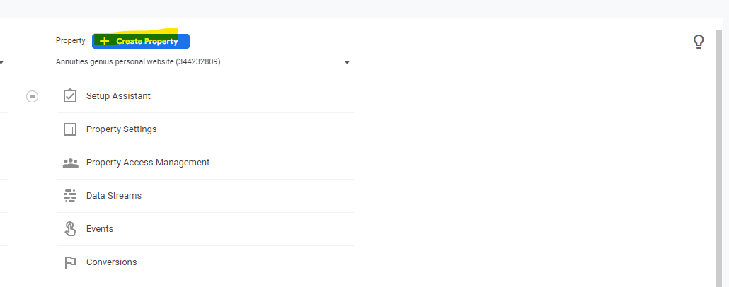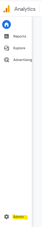 - Create a new Google Analytics 4 property by clicking on "Admin" at the bottom of the menu on the left side of the screen