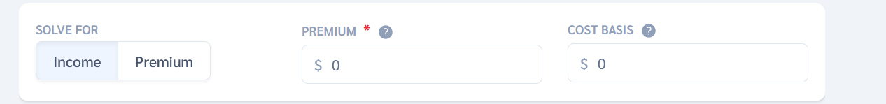 | Solve for Premium | Premium | Income | Income: \$X per month or year |