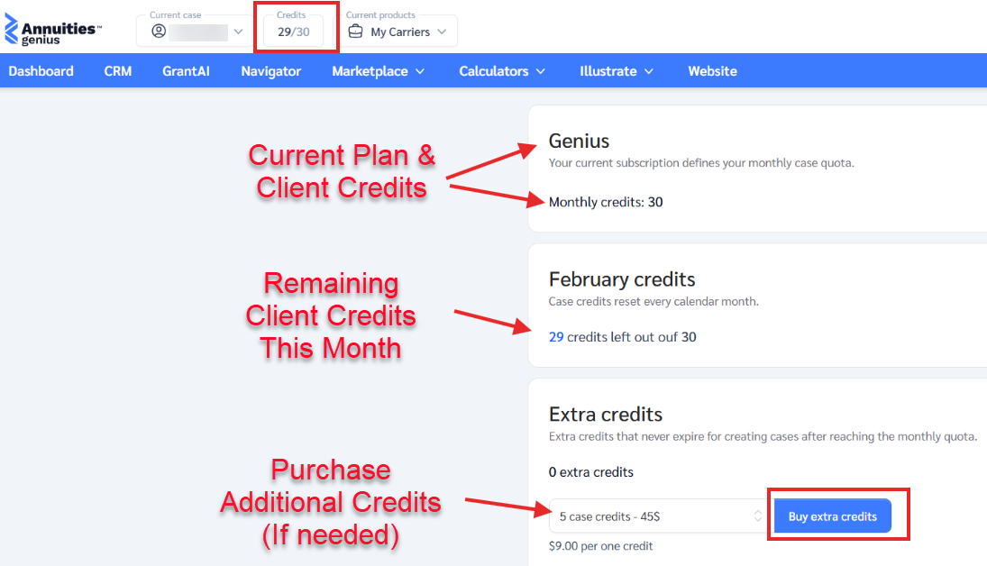 A case credit is only used when a new client profile is created. Once the profile exists, you can run unlimited reports, illustrations, and scenarios within that client without using any additional credits.