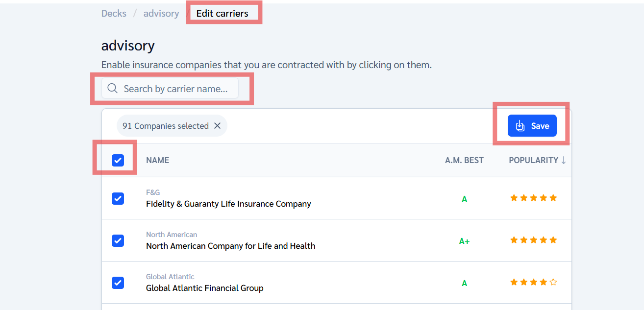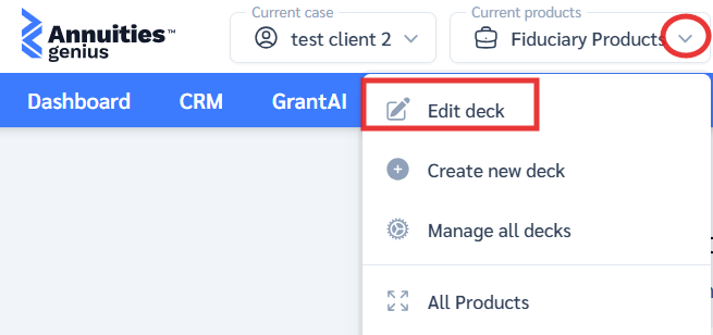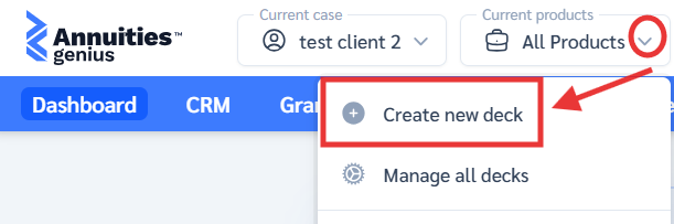 - Enter a name for your product deck. Each deck must have a name before it can be saved. Use something descriptive (e.g., Retirement Cases or MYGA Only) so you can easily organize and find it later.