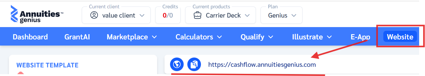 Copy your Annuities Genius website link (for example: