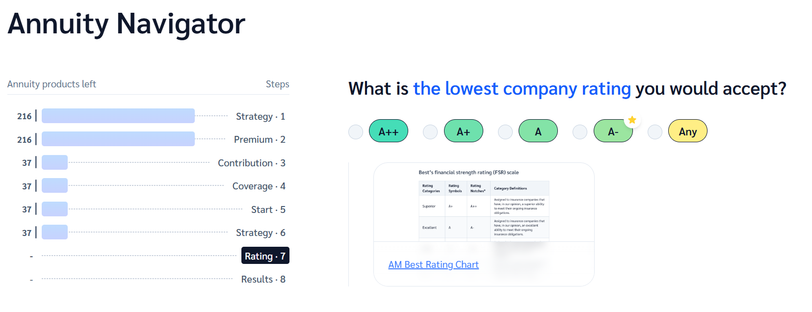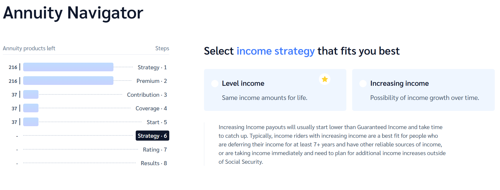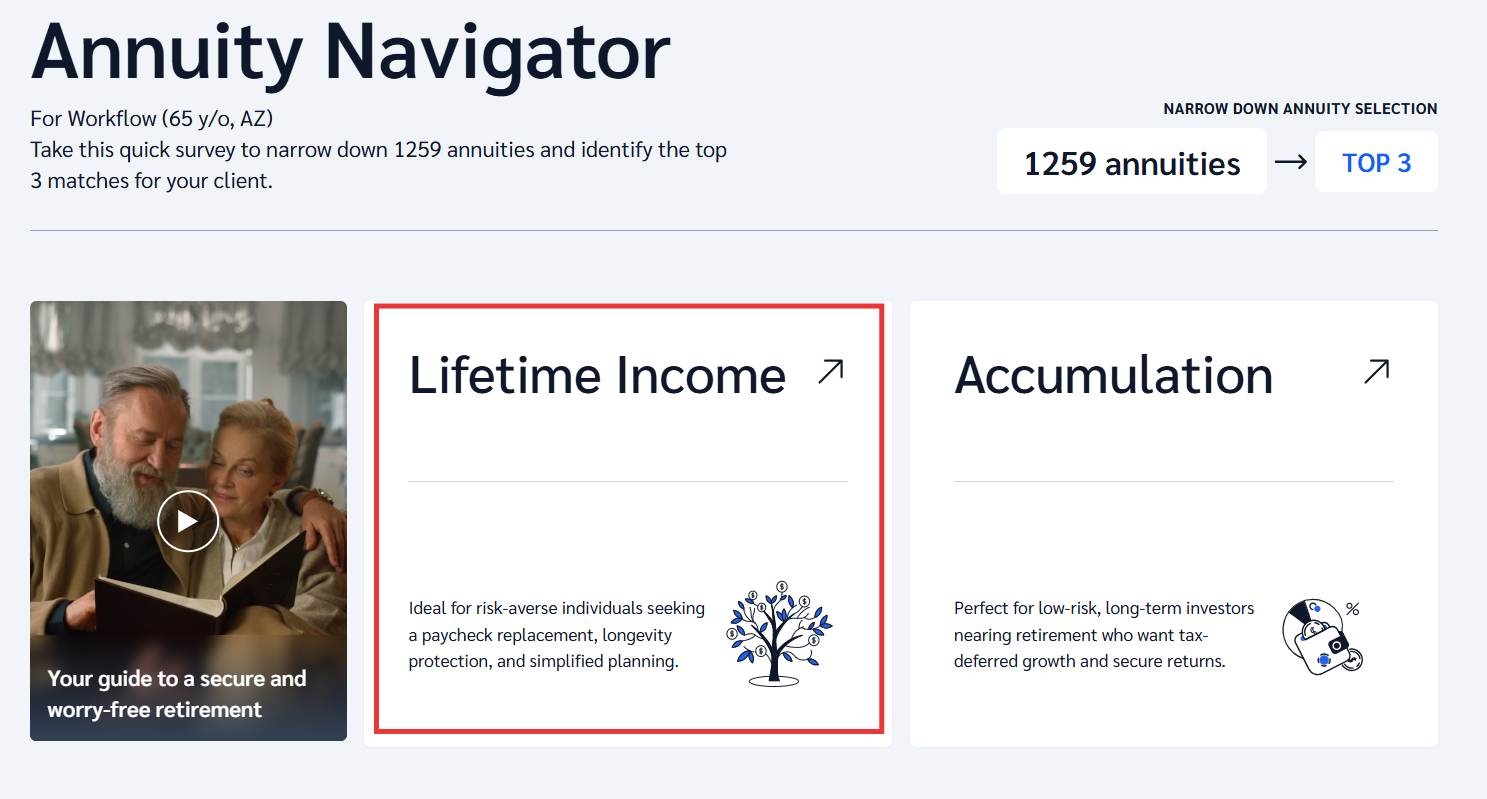 The Annuity Navigator is a guided, client-facing tool that helps agents quickly identify and present annuity strategies based on a client’s goals.