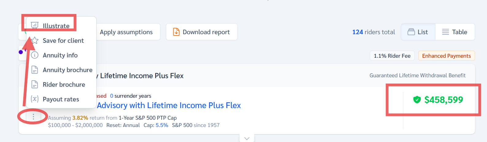 - The system will show you the required premium contribution for that income goal across multiple carriers.