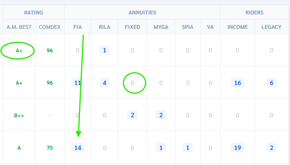 - The number represents how many products are available for that annuity type