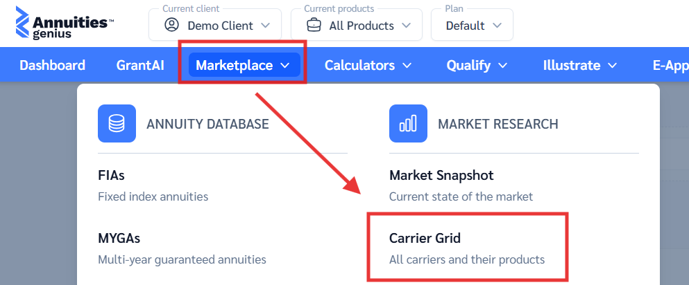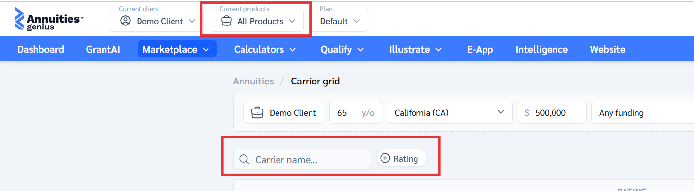 - If you don’t see a carrier or product in the Carrier Grid or Marketplace: